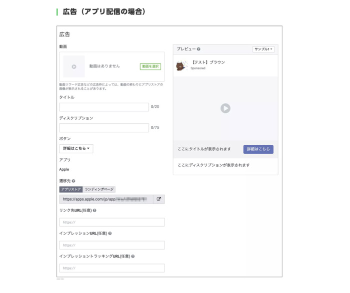 遷移先 | リンク先URL ディープリンク アプリストア ランディングページ インプレッションURL |