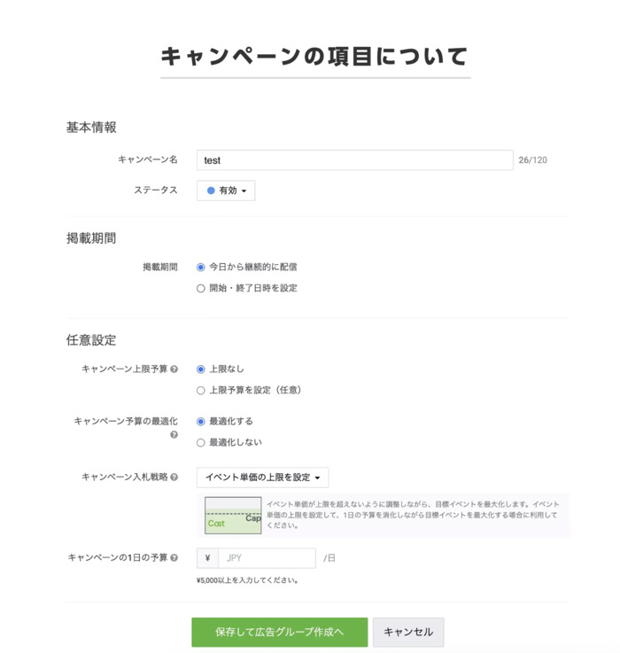 問題がなければ、保存して審査申請しましょう。LINEの広告審査を通過すると、配信を開始できます。