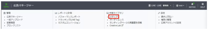 - 広告マネージャー画面左上の[共通ライブラリ]→[メディア]をクリック
