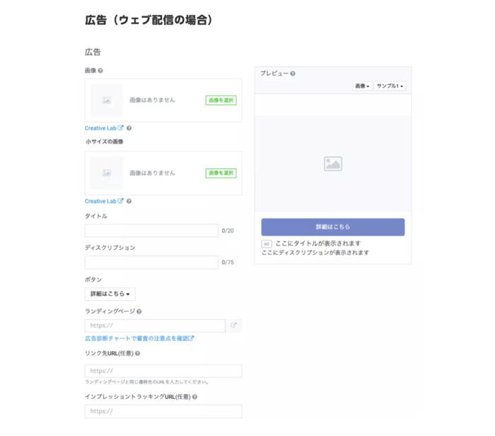 リンク先URL(任意) | 計測用URLを入力可能 |