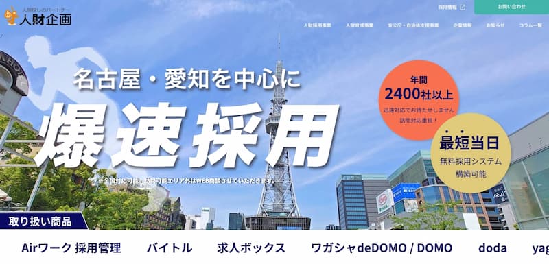 株式会社人財企画は、名古屋市中区に本社を置く求人広告代理店です。