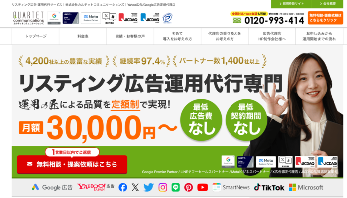 また、Google・Yahoo!・LINEの認定パートナーを受けている点も、信頼できるでしょう。