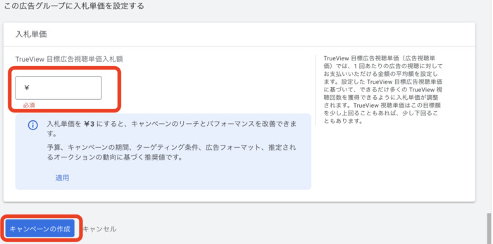 最後に、1視聴あたりに支払う金額(CPV)を設定しましょう。