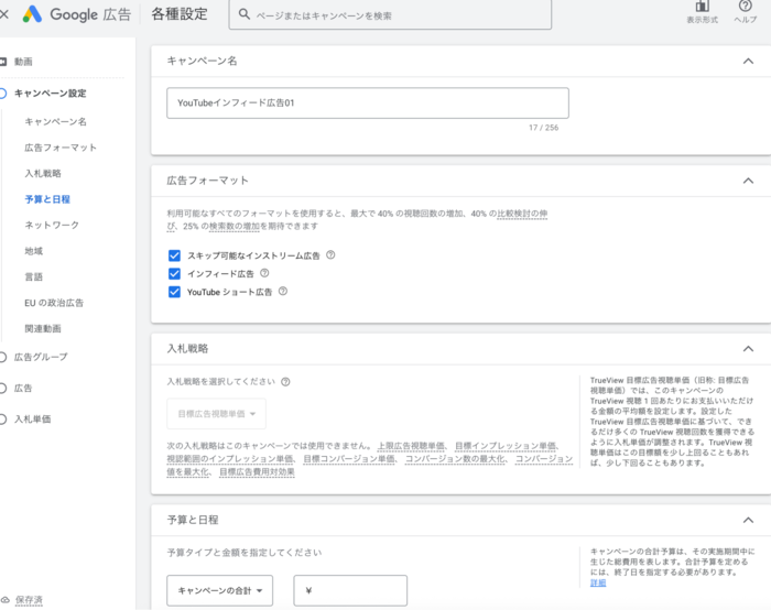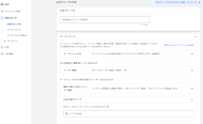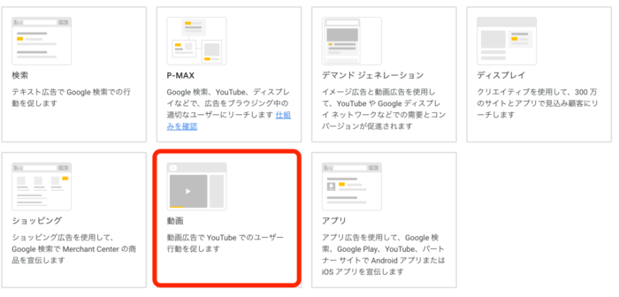 | スキップ可能なインストリーム | 幅広い認知獲得やブランド訴求に効果的 | YouTube動画再生ページ GVPサイトやアプリ | 30秒視聴 早期操作で課金 目標インプレッション単価 目標アクション単価インプレッション数に基づき課金 |